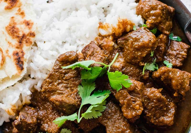 Enjoy the flavorful dish of Beef Fry with two soft chapatis, a side of rice, and a bowl of lentil gravy. This perfect combination will leave you satisfied and full, with a happy and contented appetite.