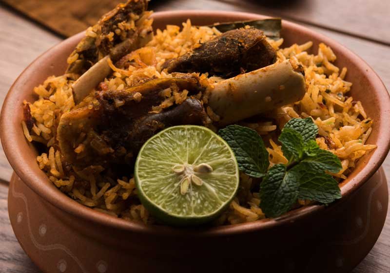 Try our famous Mutton Biryani. Fragrant Basmati rice, tender mutton, and authentic spices slow-cooked to perfection. Served with refreshing yogurt condiment and spicy curry condiment. Indulge in the regal taste of Hyderabad.