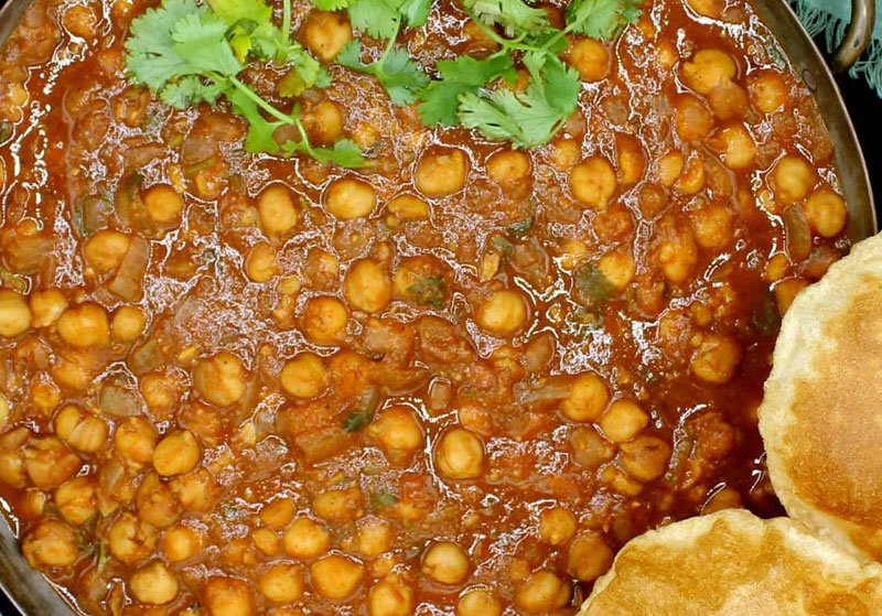 Chickpeas cooked in a tangy tomato-onion gravy with traditional North Indian spices.